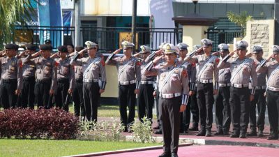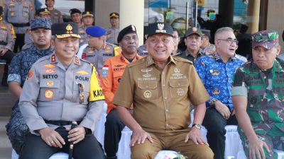 MANADO, Exploresulut.com – Gubernur Sulut Olly Dondokambey menjadi inspektur apel gelar pasukan operasi kepolisian terpusat ketupat Samrat 2023. Kegiatan dilaksanakan di Mapolda Sulut, Senin (17/04/2023). Dihadiri Kapolda Sulut Irjen Pol Setyo Budiyanto dan jajarannya.