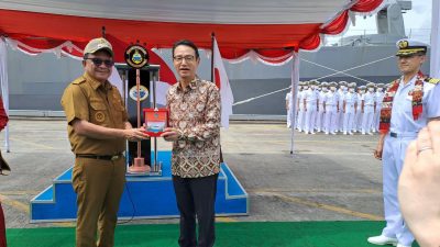 BITUNG, Exploresulut.com — Wali Kota Bitung Ir. Maurits Mantiri MM bersama Kanasugi Kenji, Duta Besar Jepang untuk Indonesia serta unsur Forkopimda menyambut kedatangan Dua Kapal Perang Jepang, JS Shimakaze (JS-172) dan JS Asagiri (JS-151) tiba di Dermaga Pelindo Terminal Peti Kemas (TPK) Bitung, pada Senin 27/2/2023.