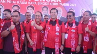 Manado, Exploresulut.com – Wakil Gubernur (Wagub) Sulut Steven Kandouw menghadiri Hari Persatuan (Hapsa) Pria Kaum Bapa (P/KB) dan Pekan Olahraga P/KB Sinode GMIM, di Pohon Kasih Kawasan Megamas Manado, Jumat (09/06/2023).
