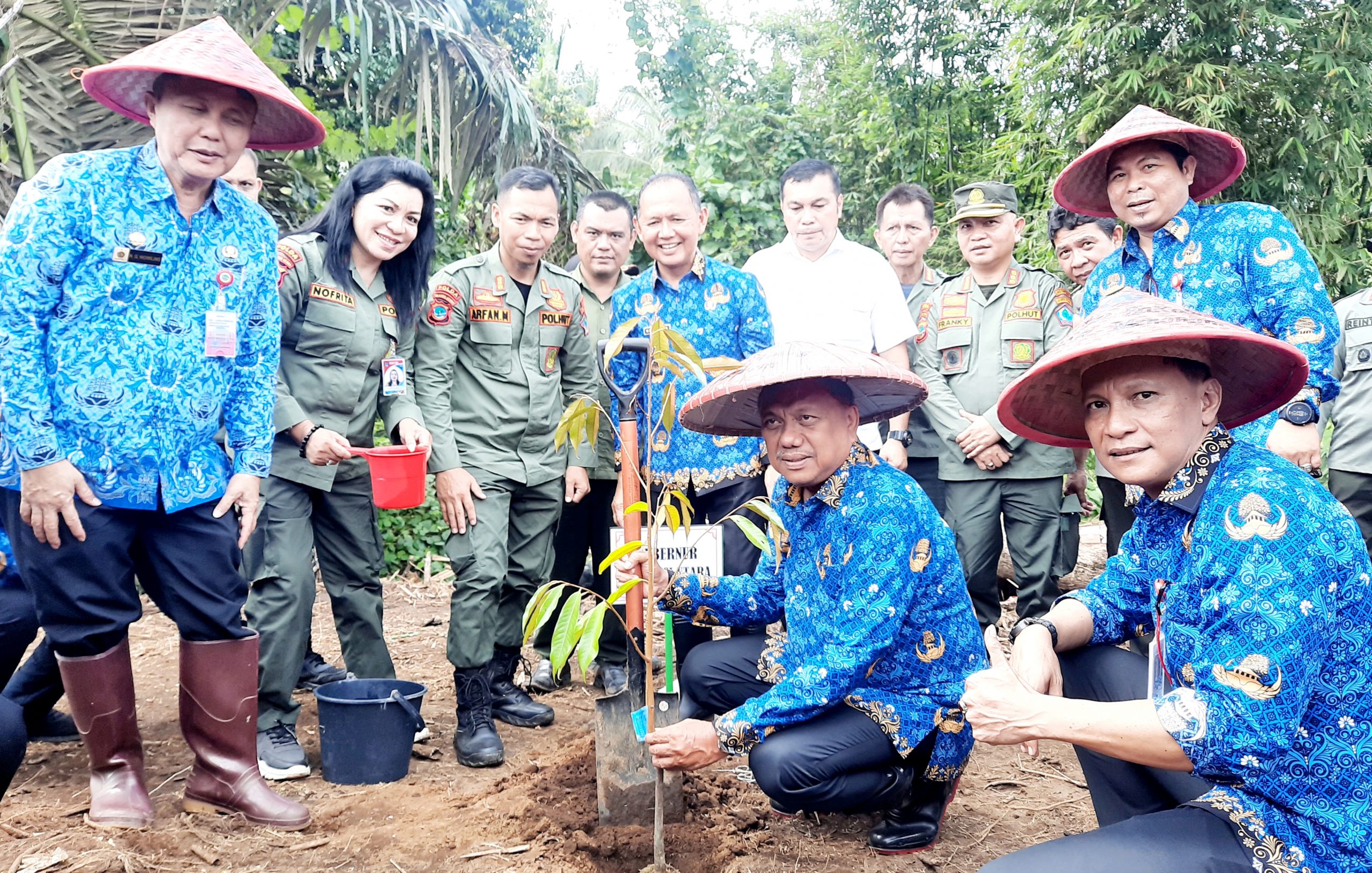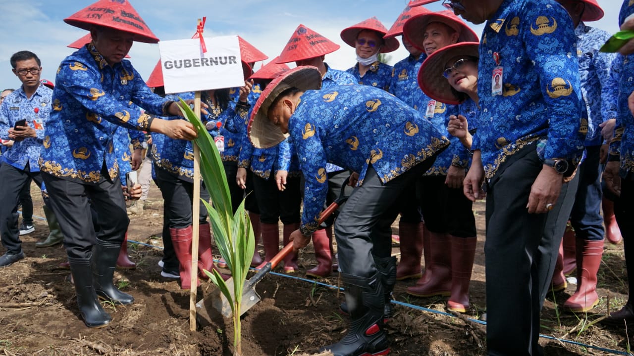 Selanjutnya Gubernur Olly beserta seluruh peserta upacara melakukan penanaman, bahkan Gubernur pun melakukan penanaman bibit buah-buahan, diantaranya bibit kelapa dan durian.