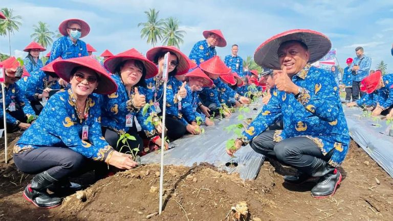 MINUT, Exploresulut.com – Gubernur Sulut Olly Dondokambey menjadi Inspektur Upacara dalam rangka HUT ke-51 Korps Pegawai Republik Indonesia (KORPRI) dirangkaian dengan mencanangkan Gerakan “Marijo Bakobong” dan “Aparatur Sipil Negara (ASN) Menanam” di Kawasan Perkebunan, Jl. Ir. Soekarno Kabupaten Minahasa Utara, Selasa 29/11/2022).