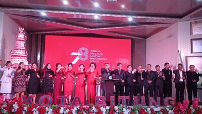 Turut hadir dalam pelaksanaan Upacara Bendera memperingati Hari Kemerdekaan ke-78 RI, dihadiri unsur Forkopimda, Sekda Kota Bitung, Ketua dan Anggota DPRD Kota Bitung, Ketua TP PKK Kota Bitung, Sekertaris I TP PKK Kota Bitung, Dharma Wanita Persatuan Kota Bitung, jajaran pejabat teras Pemkot Bitung, para Camat dan Lurah se-Kota Bitung serta para undangan.(advetorial/wp)