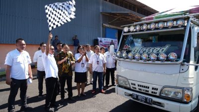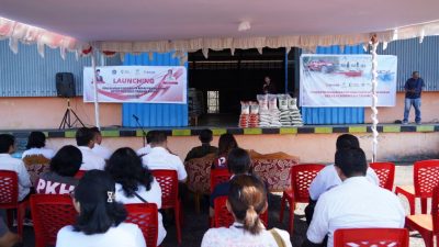 Maurits Mantiri mengibaskan bendera motif papan catur sebagai tanda peluncuran, kemudian diikuti dengan keluarnya satu unit mobil dump truk warna putih isi CPP untuk bantuan pangan beras ke Kecamatan Matuari.