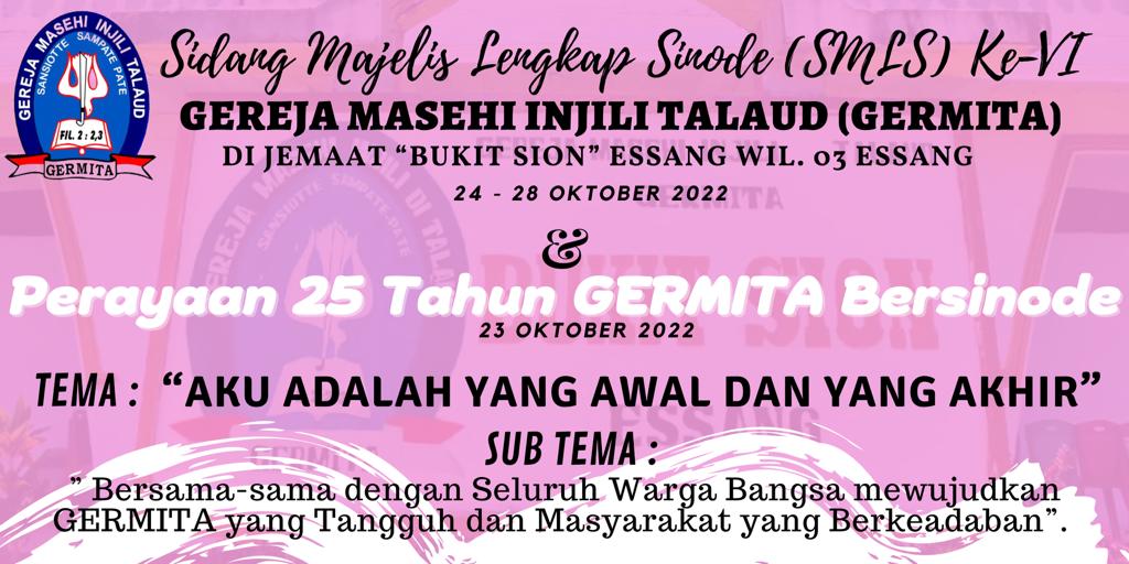 TALAUD, Exploresulut.com – Gereja Masehi Injili Talaud (GERMITA) bersiap memasuki babak baru dengan akan dilangsungkannya Sidang Lengkap Majelis Sinode (SLMS) ke VI di jemaat Bukit Sion Essang, Wilayah 03 Essang pada 24-28 Oktober mendatang.