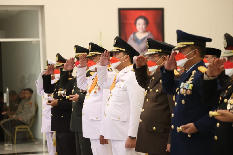 Hadir mengikuti Upacara Penurunan Bendera secara virtual di Rudis Gubernur, jajaran Forkopimda Sulut, Sekdaprov Praseno Hadi, Ketua TP-PKK Sulut Rita Maya Dondokambey-Tamuntuan, Sekretaris TP-PKK Sulut Kartika Devi Kandouw-Tanos dan Pejabat Tinggi Pratama di lingkungan Pemprov Sulut.(RR/*)