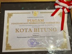 Bitung,Exploresulut.com—Prestasi gemilang ditorehkan pemkot Bitung ditingkat Provinsi Sulawesi Utara dengan menyabet 2 penghargaan sekaligus dalam Musrenbang regional Sulawesi dan Musrenbang RKPD Sulawesi Utara 2024 di Hotel Sentra Minahasa Utara, provinsi Sulawesi Utara Kamis (27/4/2023).
