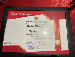 Penghargaan itu diserahkan oleh Wakil Gubernur Sulawesi Uara Steven Kandouw, yang didampingi Sekretaris Provinsi Sulut Steve Kapel dan Kepala Bappeda Provinsi Sulut Elvira Katuuk.
