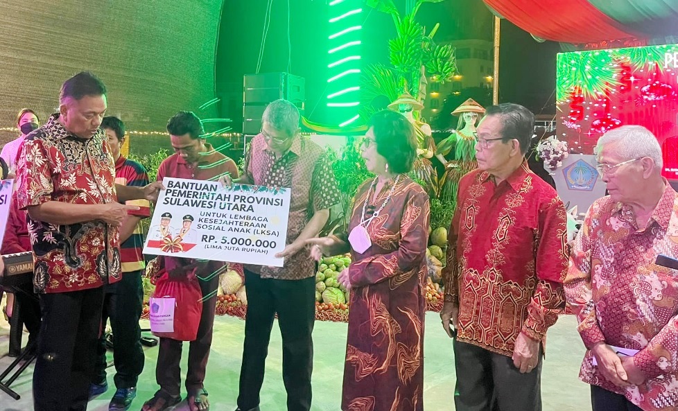 Ibadah Natal ini dilanjutkan dengan penyaluran bantuan pada warga yang terdampak krisis ekonomi oleh Gubernur Olly, didampingi Wagub Steven Kandouw dan Sekprov Steve Kepel.