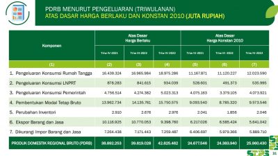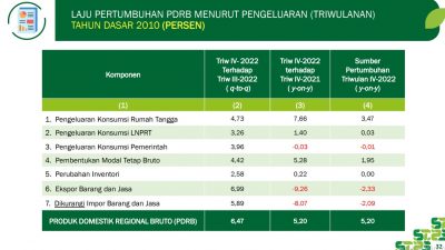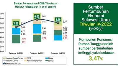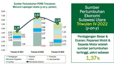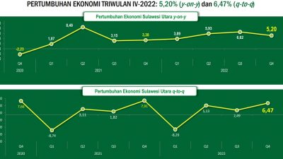 Kepala BPS Sulut Asim Saputra dalam rilis melalui kanal resmi BPS menyampaikan bahwa perkembangan tren ekonomi Sulut di sepanjang tahun 2022 terus tumbuh positif dari semenjak triwulan I hingga triwulan IV.