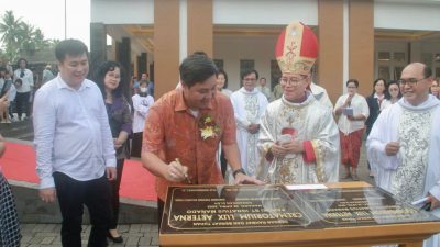 Peresmian ditandai dengan penandatanganan prasasti dan pengguntingan pita oleh Wagub Kandouw dan Uskup Manado.
