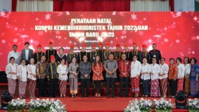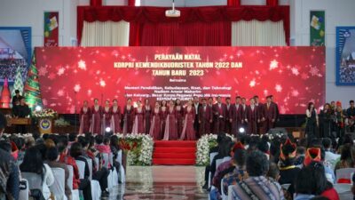 Tondano, Exploresulut.com – Gubernur Sulawesi Utara (Sulut) Olly Dondokambey menghadiri perayaan Natal 2022 dan Tahun Baru 2023 bersama Menteri Pendidikan Kebudayaan Riset dan Teknologi (Mendikbudristek) Nadiem Makarim dan jajarannya, bertempat di Auditorium Walanda Maramis Universitas Negeri Manado (Unima) Tondano Kabupaten Minahasa, Jumat (6/1/2023).